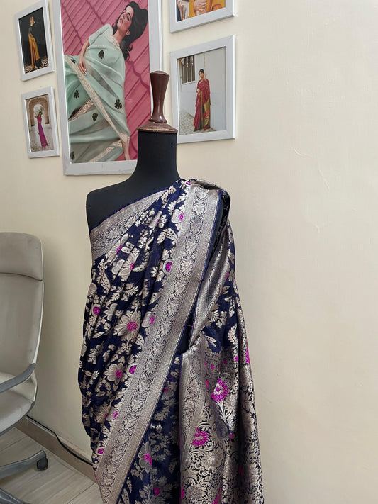 Ocean Navy Banarsi Silk