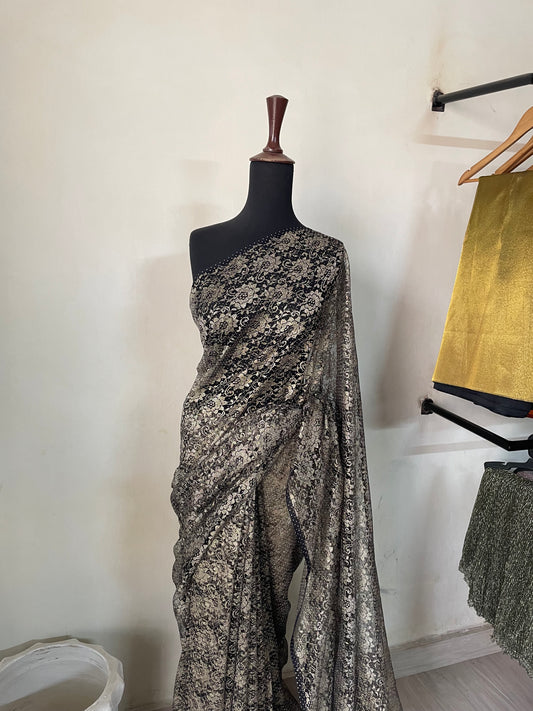 Charcoal sequins net saree
