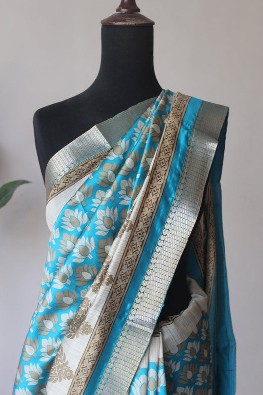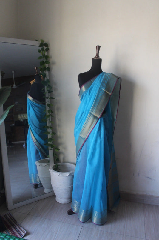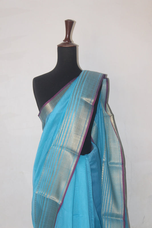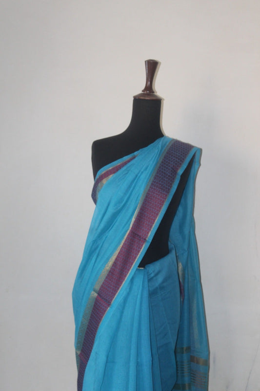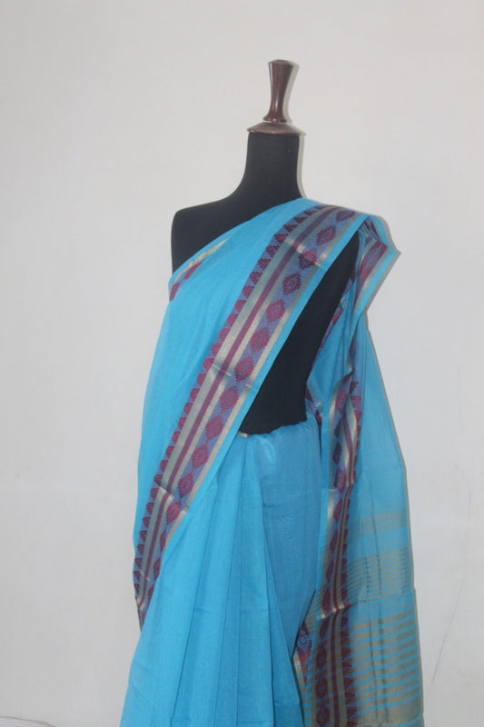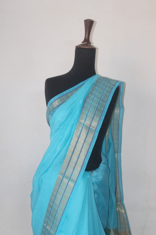 Sky Blue Breathable Cotton Saree