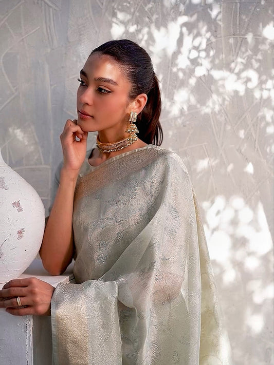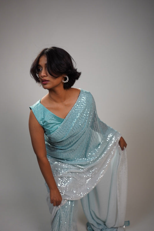 Two toned ice blue and silver shimmery saareeRegular price Rs.14,650.00 PKRRegular priceUnit price / per