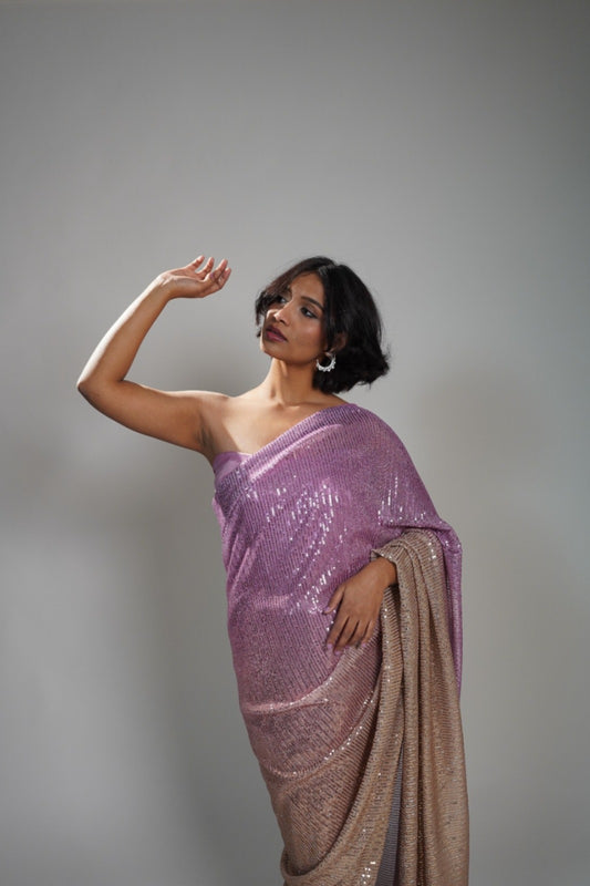 Two toned lavender & champagne shimmery saareeRegular price Rs.14,650.00 PKRRegular priceUnit price / per-