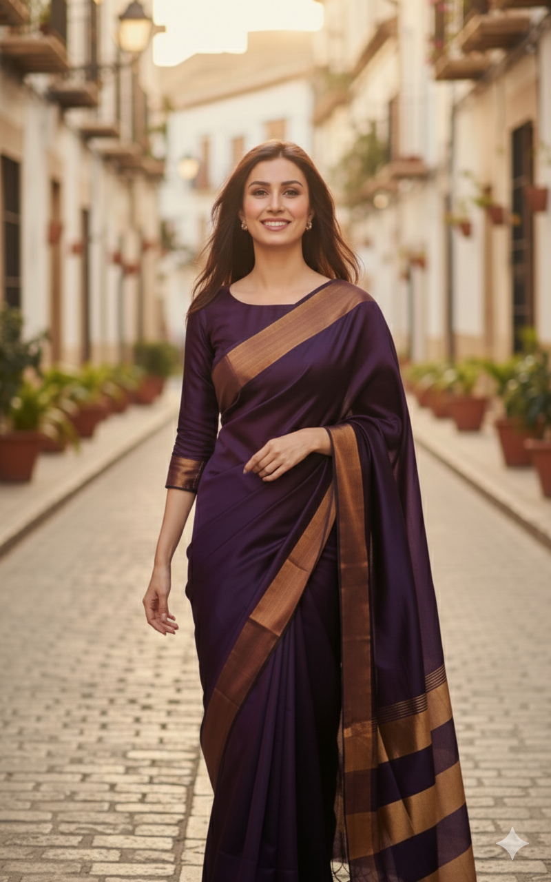 Behold our silk loom saari, the velvety touch of silk, caressed by delicate weaves, dances alongside a golden pallu, igniting a love affair of opulent elegance!